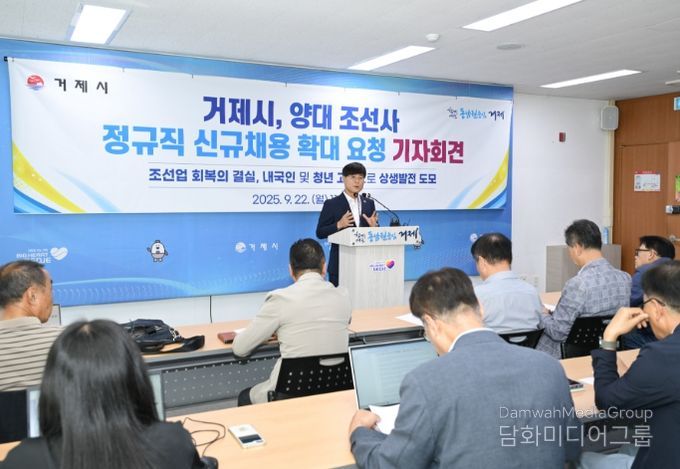 시민행정신문 이세훈 기자 | 변광용 거제시장은 22일 기자회견을 열고, 조선업 정규직 신규채용 확대 및 지역 인재 육성 방안을 제안하며, 삼성중공업과 한화오션 등 양대 조선소의 적극적인 협력을 촉구했다.