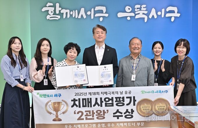 김이강 서구청장은 “이번 수상은 지역사회와 민관이 함께 만들어낸 값진 성과”라며 “앞으로도 치매 예방과 관리에 실질적인 도움이 되는 사업을 적극 발굴해 치매 걱정 없는 착한 서구를 구현하겠다”고 말했다.