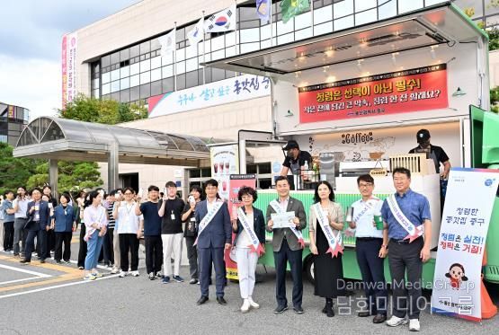 시민행정신문 강갑수 기자 | 울산 중구가 9월 22일 낮 12시 중구청 본관 입구에서 전 직원을 대상으로 ‘청렴 한 잔할래요’ 청렴 커피차 홍보활동(캠페인)을 진행했다.