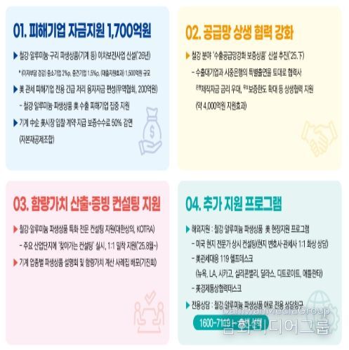 이번 간담회를 계기로 기업 현장의 애로를 반영한 신규서비스도 도입하기로 했다. ❶미 정부에 대한 수출기업 관세 애로 의견서 제출 지원, ❷‘美 관세청 사전심사제도’(CBP E-ruling) 신청 컨설팅, ❸CBP 사후 검증 요구자료 대응 지원 서비스 등을 9월 중 신속히 개시하고 철강 파생상품 기업 특화 지원프로그램*도 추가로 도입할 예정이다.