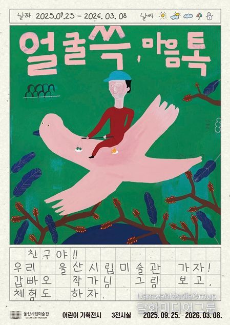 시민행정신문 강갑수 기자 | 울산시립미술관은 오는 9월 25일부터 내년 3월 8일까지 1층 3전시실과 로비에서 어린이전시 ‘얼굴 쓱, 마음 톡’을 연다고 밝혔다.
