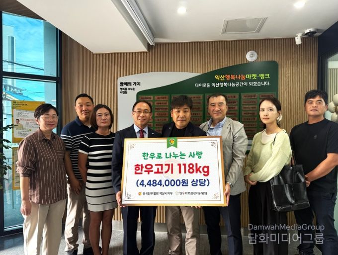 ㈔전국한우협회 익산지부는 명절을 앞두고 지역사회와 함께하는 상생의 가치를 실천하고자, 한우불고기 118㎏(450만 원 상당)을 익산행복나눔마켓·뱅크에 전달했다.