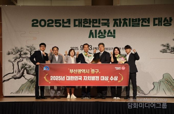 시민행정신문 강갑수 기자 | 부산 중구는 지난 23일 열린‘2025 대한민국 자치발전 대상’시상식에서 기초자치단체 부문 수상의 영예를 안았다.