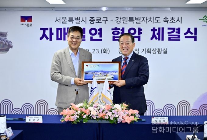 시민행정신문 이세훈 기자 | 강원특별자치도 속초시와 서울특별시 종로구는 9월 23일, 종로구청 기획상황실에서 상생발전과 활발한 교류 협력을 위한 친선결연 협약을 체결했다.