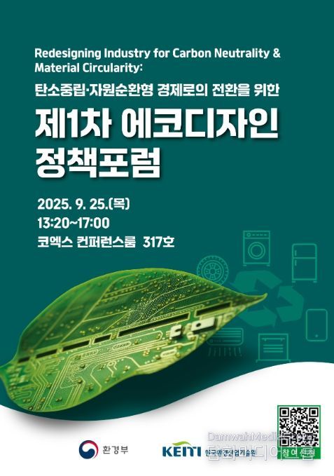 시민행정신문 김학영 기자 | 환경부와 한국환경산업기술원은 9월 25일 코엑스(서울 강남구 소재)에서 ‘제1차 에코디자인 정책포럼’을 개최한다.