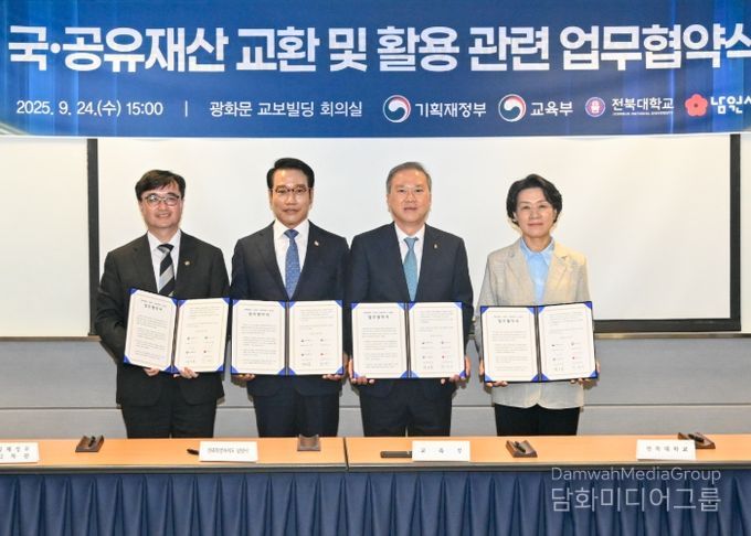 남원시는 오는 9월 24일 오후 3시, 서울 광화문 교보빌딩 20층 회의실에서 열린 '2025년 중앙·지방간 국유재산 정책협의회'에서 기획재정부(제2차관 임기근)·교육부(차관 최은옥)·전북대(총장 양오봉)와 함께 부지교환 업무협약(MOU)을 체결했다고 밝혔다.
