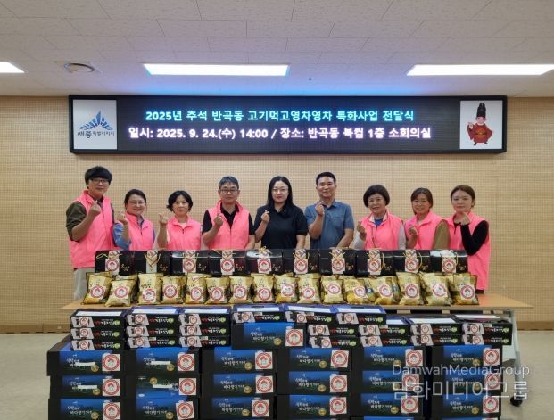 이날 행사에는 ▲한누리식당 김 25상자, ▲세종강남농협 반곡지점 쌀 1㎏ 40포, ▲새나루 12단지 송편 20상자가 기탁됐으며, 반곡동지역사회보장협의체가 자체 사업으로 마련한 고기묶음 20개를 전달했다.
