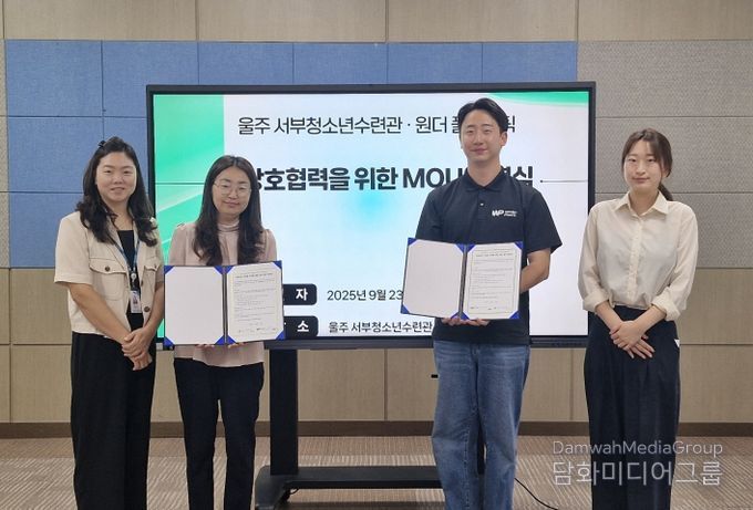 시민행정신문 김학영 기자 | 울주군시설관리공단(이사장 최인식) 서부청소년수련관은 9월 23일, 자원순환 및 환경 교육 활성화를 위해 ㈜원더플라스틱(대표 김민석)과 업무협약을 체결했다.