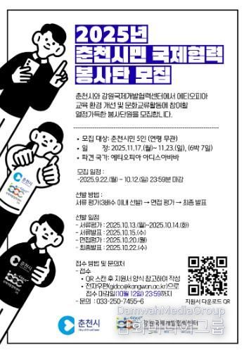 춘천시는 강원국제개발협력센터와 함께 ‘2025 춘천시민 국제협력봉사단’을 창단해 오는 11월 에티오피아 아디스아바바에 파견한다.