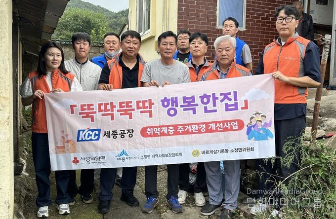 시민행정신문 강갑수 기자 | 세종특별자치시 소정면지역사회보장협의체(공동위원장 김광태·김한식)가 25일 케이씨씨(KCC)세종공장(공장장 윤석헌)과 함께 관내 추거취약가구를 대상으로 ‘뚝딱뚝딱 행복한집’ 집수리를 진행했다.