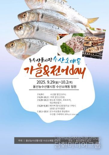 시민행정신문 기자 | 울산 남구는 9월 29일부터 10월 2일까지 나흘간 남구 제5호 골목형상점가로 지정된 울산농수산물시장 수산소매동에서‘가을&전어day’축제를 개최한다고 밝혔다.