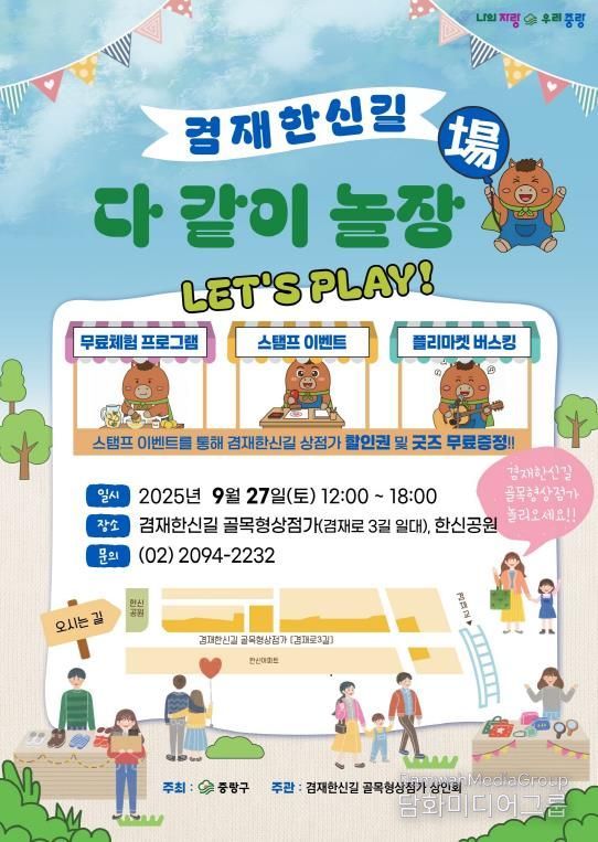 시민행정신문 이존영 기자 | 중랑구는 오는 9월 27일, 겸재한신길 골목형상점가(겸재로3길 일대)와 한신공원에서 ‘겸재한신길 다 같이 놀장(場)’ 축제를 개최한다.