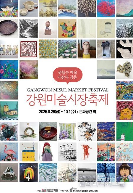 시민행정신문 강갑수 기자 | 강원특별자치도는 (사)한국민족미술인협회 강원지회와 함께 '2025년 강원미술시장축제'를 9월 26일부터 10월 1일까지 6일간 남춘천역 1층 문화공간에서 개최한다.