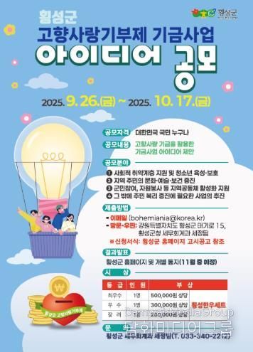 공모 주제는 횡성군의 특색을 살리면서도 고향사랑기부금으로 추진 가능한 소규모·단년도 사업으로, 2026년부터 시행할 수 있는 아이디어를 대상으로 한다.