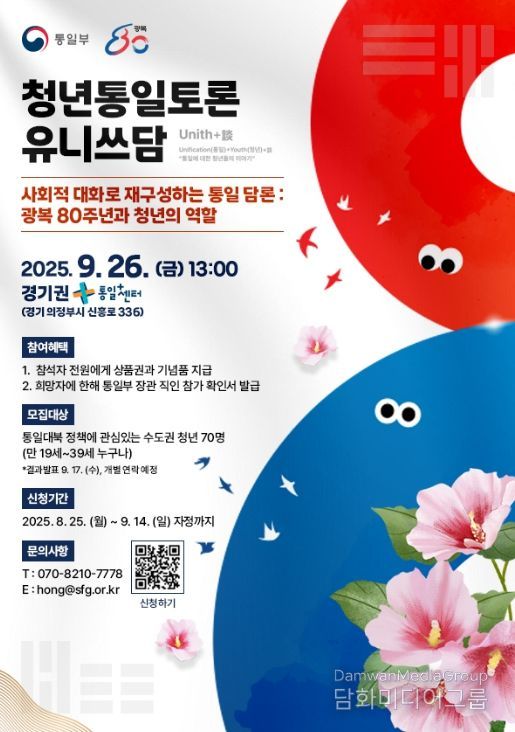 시민행정신문 강갑수 기자 | 통일부는 9월 26일 13시, 경기권 통일플러스센터(의정부시 소재)에서 다양한 관점을 가진 청년 70여 명이 모여 ‘광복 80주년과 청년의 역할’을 주제로 '제3차 청년 대상 합의 형성 토론회'를 개최한다.