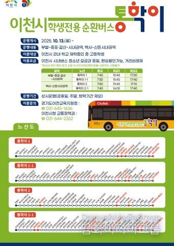 한편, 이천시는 시범운행 과정에서 나타나는 문제점과 개선사항을 면밀히 검토해 2026년 3월부터 정식으로 ‘통학이’를 운영할 예정이다.