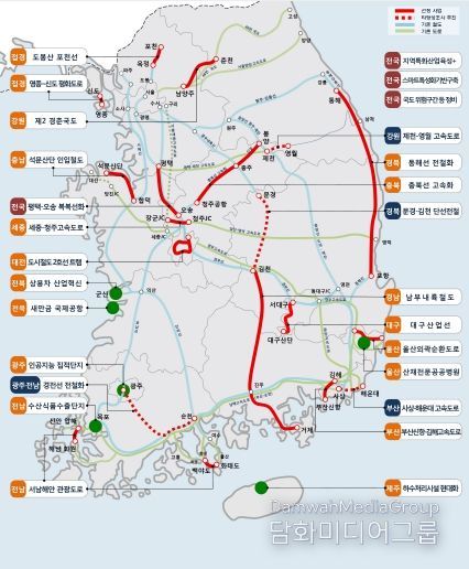 행정절차 중인 사업으로는 ▲새만금국제공항 ▲강원 제2경춘 국도 ▲충남 석문산단 인입철도 ▲세종-청주 고속도로 ▲경남 남부내륙철도 ▲대구산업선 ▲울산외곽순환도로다.