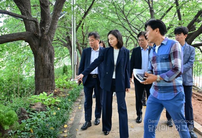 이에 최 의장은 2023년에 생태복원 및 녹화사업이 진행된 안양천 현장을 방문해 실제 식재된 수목 등을 살피고, 하자관리 및 유지관리 현황을 살폈다.