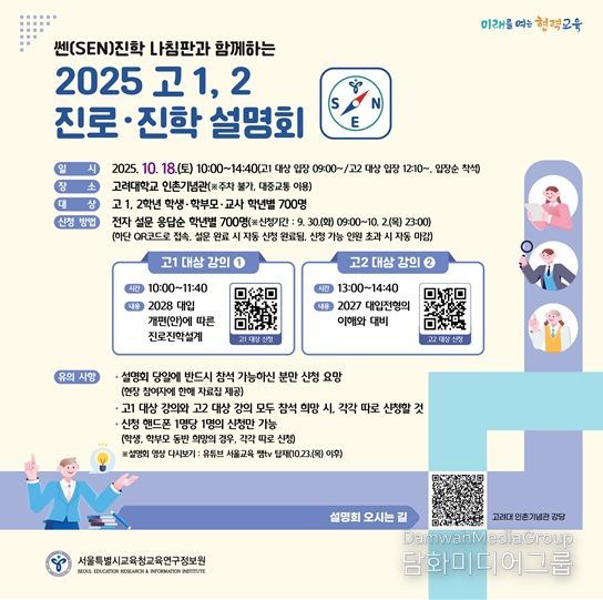 시민행정신문 이존영 기자 | 서울특별시교육청 산하 교육연구정보원은 2025학년도 고 1, 2 학생들의 진로·진학 학업 설계를 위한 맞춤형 통합지원을 추진하고 있다.