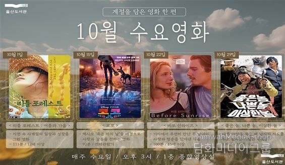 시민행정신문 강갑수 기자 | 울산도서관이 10월 한 달간 매주 수요일 오후 3시 도서관 1층 종합영상실에서 ‘계절을 담은 영화 한 편’을 주제로 영화를 상영한다.