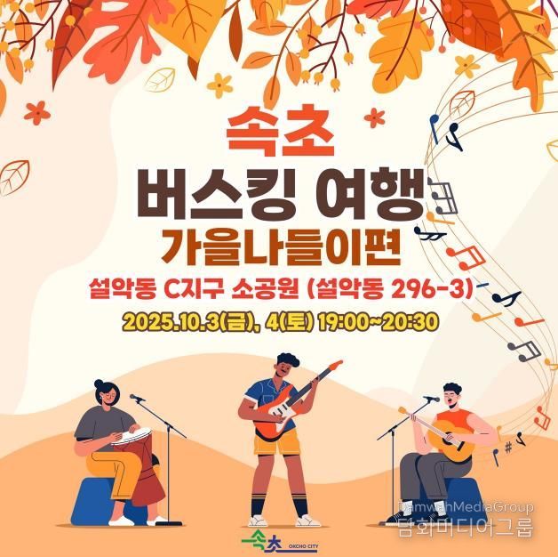 시민행정신문 강갑수 기자 | 속초시가 추석 연휴의 시작과 함께 시민과 관광객에게 특별한 문화예술 향유 기회를 선사하기 위해 ‘속초 버스킹 여행-가을나들이편’을 오는 10월 3일, 4일 오후 7시부터 8시 반까지 설악동 C지구 소공원에서 선보인다.