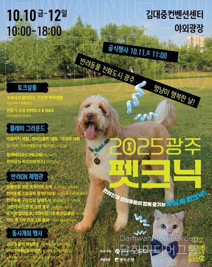 시민행정신문 기자 | 광주광역시는 오는 10월 10일부터 12일까지 사흘동안 김대중컨벤션센터 야외광장에서 반려인과 반려동물이 함께하는 ‘2025 광주 펫크닉(pet+picnic)’ 행사를 개최한다.