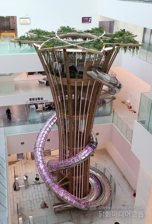 먼저 ‘놀거리’는 신청사 중정에 설치된 높이 15m의 초대형 미끄럼틀(슬라이드)이다. 운영을 시작한 지 20일 만에 6천여 명이 다녀갈 정도로 이미 시민들에게 큰 인기를 얻고 있다.