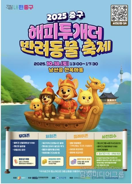 시민행정신문 이존영 기자 | 서울 중구는 오는 10월 18일 오후 1시부터 5시 30분까지, 남산골 한옥마을에서‘2025 해피투개(dog)더’ 반려견 축제를 연다. 올해로 3회째를 맞이한 이번 축제는 ‘충무공 이순신 탄생지, 중구’의 의미를 더해 용맹과 지혜, 교감을 담은 다채로운 프로그램으로 꾸렸다.