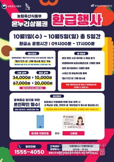 행사 기간 농축산물을 최소 3만4천원 이상 구매 시 1만원, 6만7천원 이상 구매할 경우 최대 2만원의 온누리상품권을 받을 수 있다.