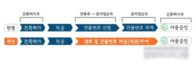 그동안 건축주는 건물 신축 시 건축법에 따라 건축 담당 부서에 착공신고를 한 후 도로명주소법에 따라 주소 담당 부서에 건물번호 부여를 별도로 신청해야 했다.