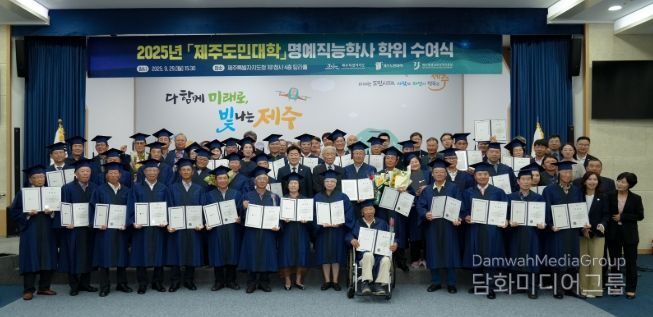 제주특별자치도는 29일 도청 탐라홀에서 '2025년 제주도민대학 명예직능학위' 수여식을 개최했다.