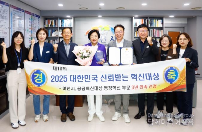 시민행정신문 강갑수 기자 | 이천시는 ‘제10회 2025년 대한민국 신뢰받는 혁신대상’에서 3년 연속 공공혁신(행정혁신부문) 대상을 수상했다고 밝혔다.