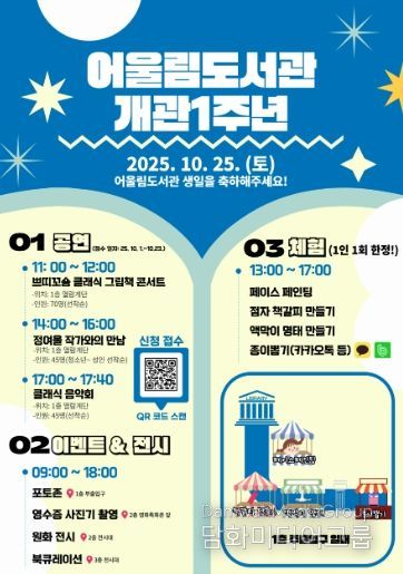 시민행정신문 강갑수 기자 | 남원어울림도서관 개관 1주년을 맞아 오는 10월 25일(토) 9시부터 도서관 내·외부에서 시민과 함께하는 행사를 개최한다.