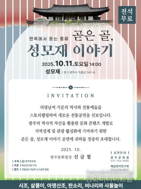 올해 하반기는 의령남씨 일가 약천 남구만을 주제로 한 “한옥에서 듣는 풍류 곧은골, 성모재 이야기” 공연으로 시민들의 곁을 찾아갈 예정이다.