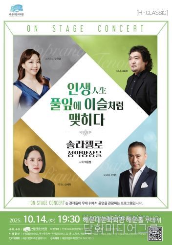 시민행정신문 기자 | 해운대문화회관은 10월 14일 해운홀에서 ‘온 스테이지 콘서트 솔라첼로 성악앙상블’을 개최한다.