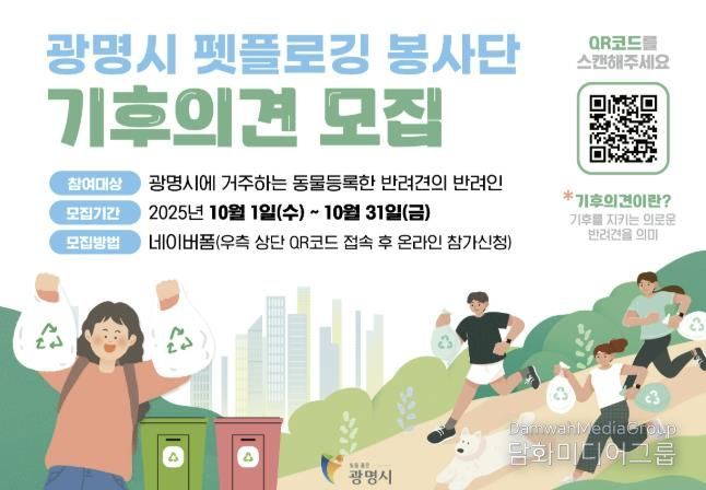 한편, 광명시는 올해 1기를 시작으로 봉사단 규모를 매년 확대해 생활 속 기후실천 문화를 확산하고, 환경정화와 반려문화가 결합된 시민 참여형 모델을 정착시킬 계획이다.