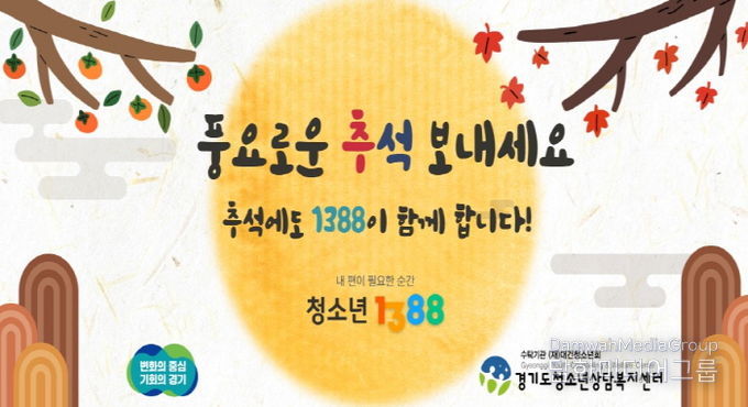 시민행정신문 강갑수 기자 | 경기도는 개천절과 추석, 한글날이 이어지는 10월 3일부터 9일까지 연휴 기간에도 ‘청소년전화 1388’을 24시간 운영해 위기 청소년 상담과 발견·구조 서비스를 지원한다고 1일 밝혔다.