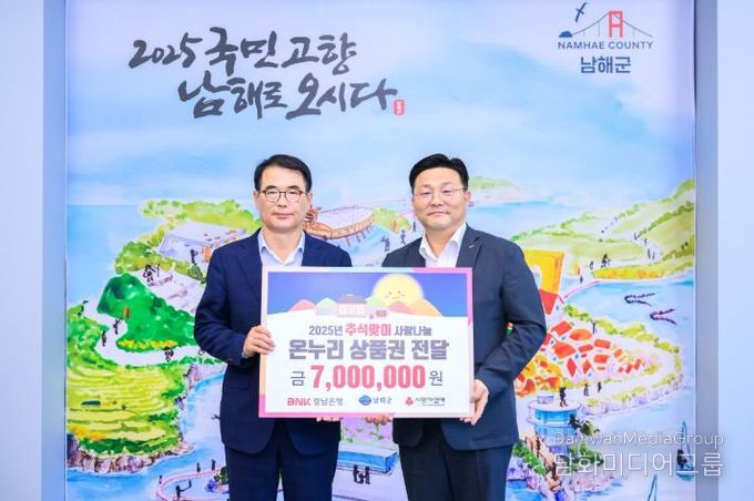 시민행정신문 강갑수 기자 | 남해군은 지난 30일 BNK경남은행 남해지점이 추석 명절을 앞두고 700만원 상당의 온누리상품권을 기탁했다고 밝혔다.
