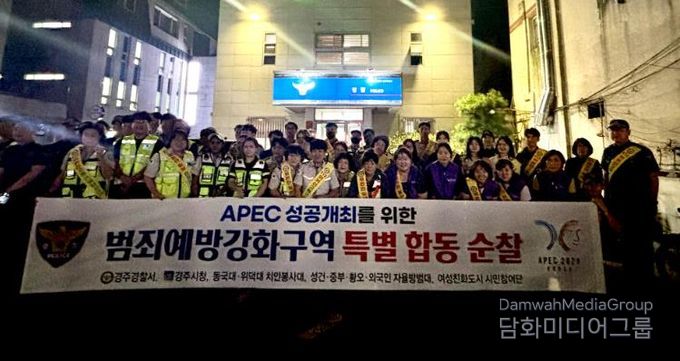 합동순찰에는 여성친화도시 시민참여단, 자율방범대, 외국인 유학생 치안봉사대, 경주시청, 경주경찰서 등 민·관·경이 함께 참여했다.