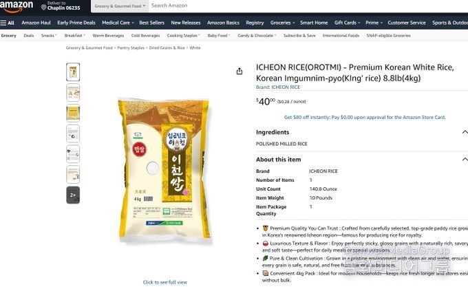 한편, 이번 아마존 입점을 통해 미국 소비자들은 온라인으로 손쉽게 ‘임금님표 이천쌀’을 구매할 수 있으며, 미국 현지 물류창고를 활용한 신속 배송 서비스도 제공될 예정이다.