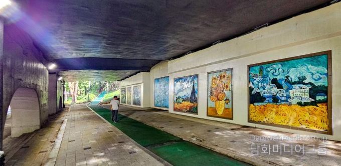 이번 사업은 강남둘레길 재정비와 연계해 양재천의 가치를 높이고, 시민들에게 쾌적하면서도 매력적인 공간을 제공하기 위해 추진됐다. 높이 4.9m, 길이 41.7m 규모의 교각 하부 보행통로 벽면에 ‘론강의 별이 빛나는 밤’, ‘밤의 카페 테라스’, ‘해바라기’ 등 고흐의 대표작 7점이 벽화로 재현됐다. 단순한 장식이 아니라, 페인트와 타일을 결합한 방식으로 내구성과 예술성을 동시에 살렸다.
