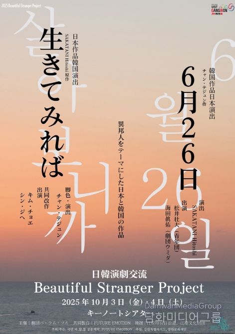 시민행정신문 강갑수 기자 | 속초시를 기반으로 활동하는 극단 파.람.불이 일본 극단 FUTURE EMOTION과 손잡고 국제교류 프로젝트 ‘아름다운 이방인 프로젝트’를 무대에 올린다.