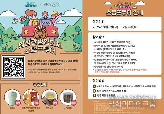 횡성 지역 관광협의체와 함께 진행하는 이번 행사는 횡성군 관광 활성화와 상생을 위해 기획됐으며, 횡성관광협의체 추천 관광지 4곳과 횡성군 관광지 4곳을 방문하고 인증하는 방식으로 진행된다.