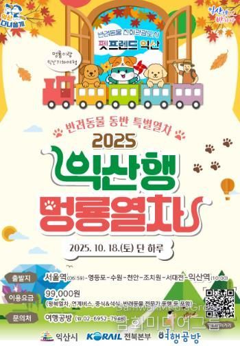 익산시는 오는 18일 운행되는 '2025 익산행 멍룡열차' 참가자를 모집한다고 2일 밝혔다.