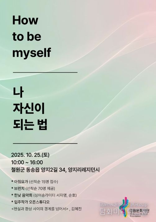 시민행정신문 기자 | 철원문화재단은 2025년 10월 25일 오전 10시부터 16시까지 양지리 레지던시를 개방해 웰니스 문화행사를 진행한다.