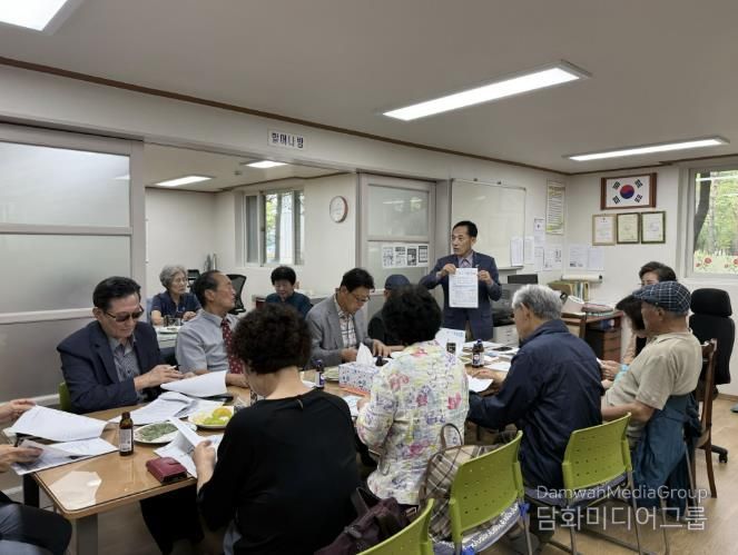 시민행정신문 강갑수 기자 | 수원시 팔달구 화서2동 행정복지센터는 지난 10월 1일 오전 11시, 관내 16개소 경로당 회장단이 참석한 가운데 꽃뫼버들마을 금강아파트 경로당에서 2025년 10월 경로당협의회 월례회의를 개최했다.