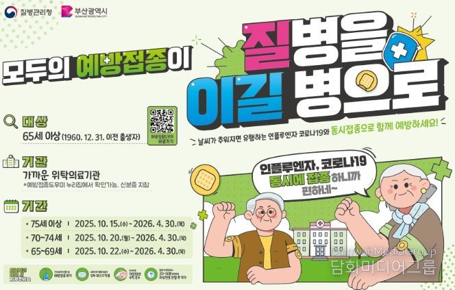 시민행정신문 기자 | 사상구보건소는 오는 10월 15일부터 내년 4월까지 65세 이상 어르신을 대상으로 인플루엔자(독감)·코로나19 동시 접종을 진행한다고 밝혔다.