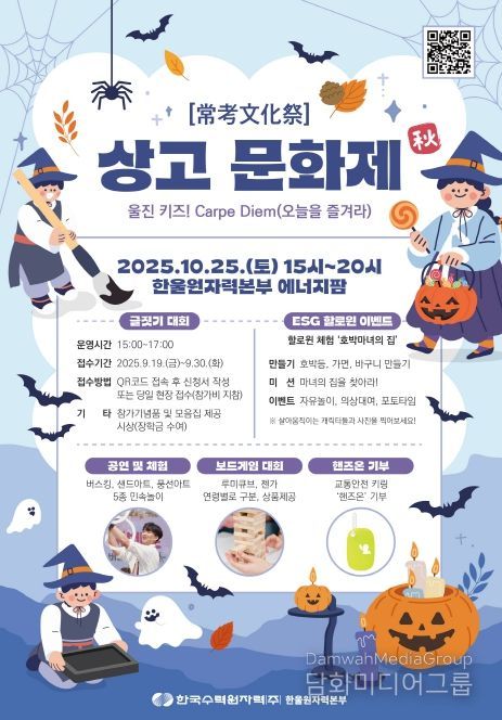 시민행정신문 강갑수 기자 | 한국수력원자력(주) 한울원자력본부)는 10월 25일 15시 한울에너지팜에서 제2회 ‘한울 상고문화제 가을(秋)편’ '울진 키즈! Carpe Diem(오늘을 즐겨라)'를 개최한다.