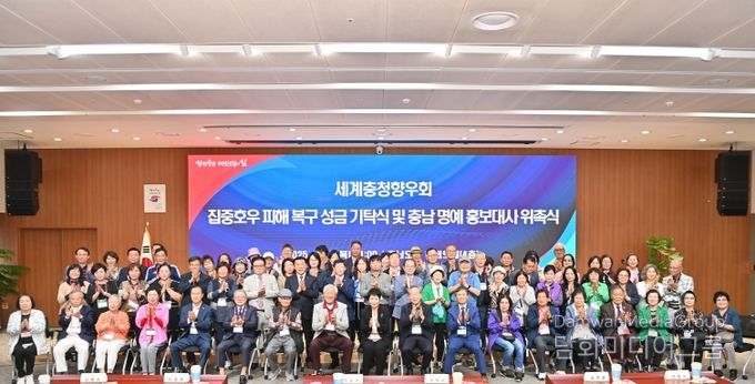 이 세계충청향우회장은 “지난해에 이어 올해도 고향 충남에 집중호우로 큰 피해가 있었던 것으로 안다. 복구에 조금이나마 힘이 되길 바란다”라며 “충남 명예 홍보대사로 위촉된 만큼 세계충청향우회 회원들과 함께 충남을 알리는 데 기여할 것”이라고 말했다.