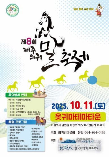 시민행정신문 기자 | 서귀포시는 ‘헌마공신 김만일’을 기리고, 제주 전통마와 지역 목축문화를 널리 알리기 위한 제8회 의귀말 축제가 오는 11일 옷귀마테마타운 일원에서 개최된다고 밝혔다.